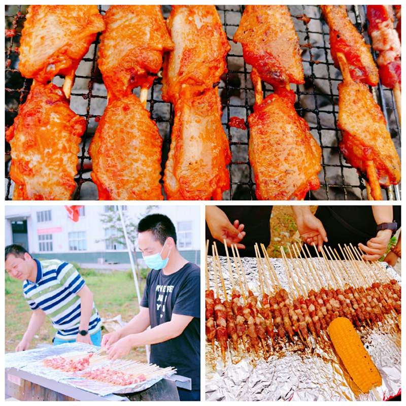 活動在行政部門的主導(dǎo)下,大家分工明確,洗菜、生火、分配食物,配合默契,忙得不亦樂乎。下午16:00,在楊總的號令下,趁著旺盛的炭火,燒烤正式拉開了帷幕。
