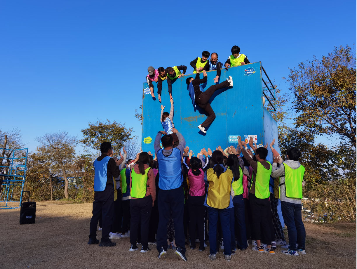 在專業(yè)拓展教練的帶領下進行了一場智慧與力量的比拼。雖是朝夕相處的同事,但活動伊始大家都有些拘謹。在教練的熱情帶動下,通過幾輪熱身運動,大家迅速卸下心防,打破壁壘,手拉著手盡情投入到活動當中。